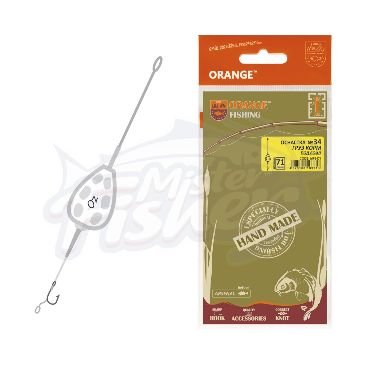 Оснастка №34 – Оснастка для ловли карпа “Груз-корм” на 1 крючок, под бойл. Изготовлена из высококачественных комплектующих: грузило ORANGE Lead Feed, карповый поводковый материал ORANGE Carpx8, лидкор (проклеенный) фирмы Ockert (Germany), крючки под бойл Kumho (Korea). Комплектующие и специальные узлы обеспечивают надежность всей оснастки и гарантируют солидный улов.