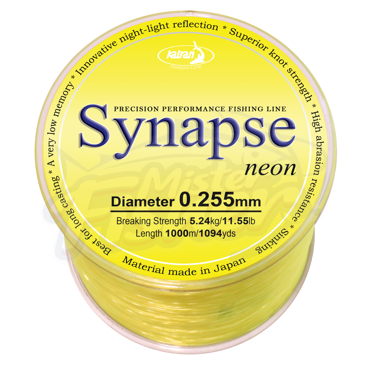 Леска Katran SYNAPSE NEON - прочная на узлах, мягкая, гладкая леска с зеркальным антиабразивным покрытием. Применение новейшей технологии окрашивания оставляют леску Синапс Неон прозрачной и абсолютно не видимой для рыб в воде. А благодаря своему ярко-жёлтому цвету и способности отражать свет, создаёт прекрасный обзор для рыболова, особенно в ночное время. Имеет небольшое растяжение 12-15%, тонущая. Рекомендуется для донной ловли на больших дистанциях.