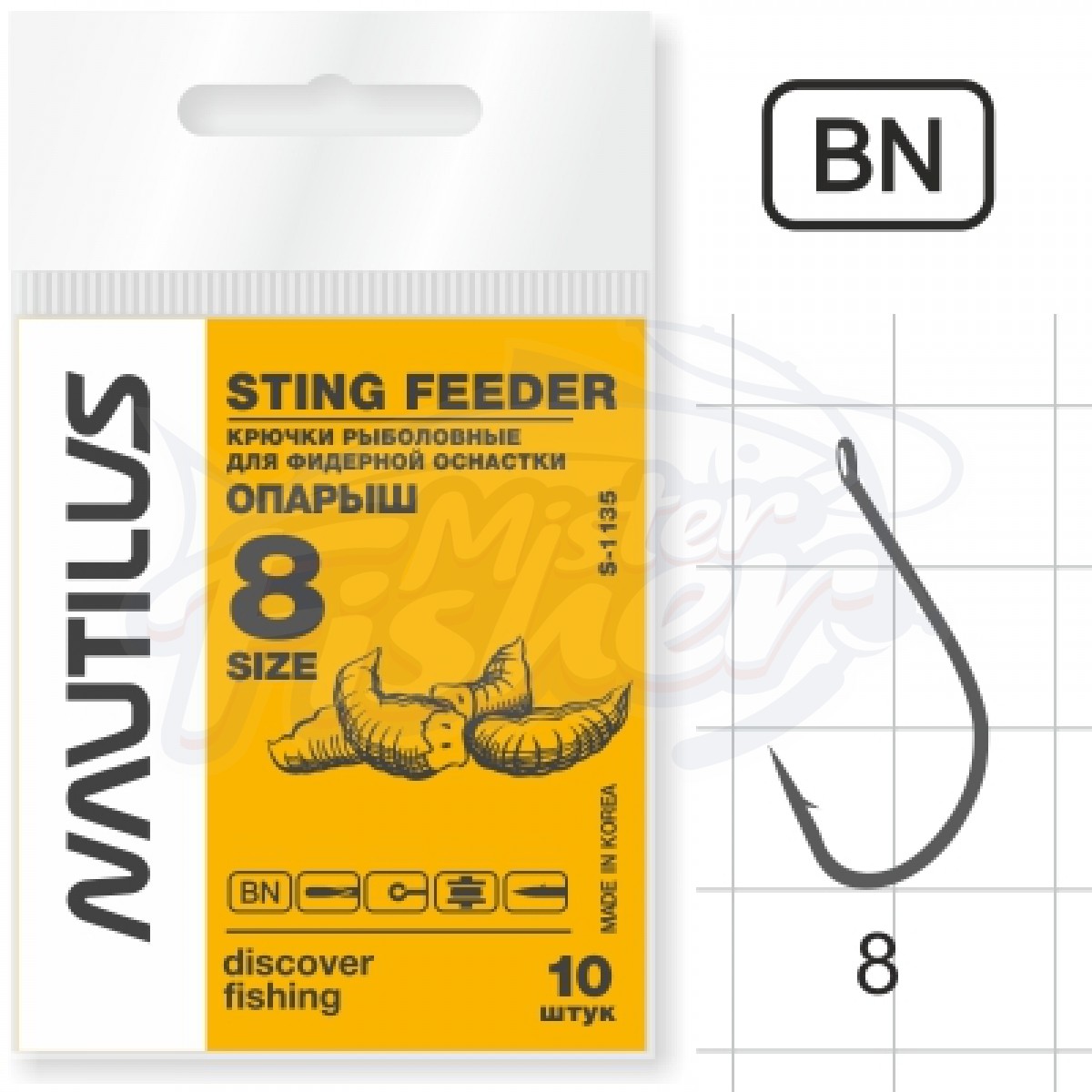 Крючок Nautilus Sting Feeder Фидер опарыш S-1135BN № 8