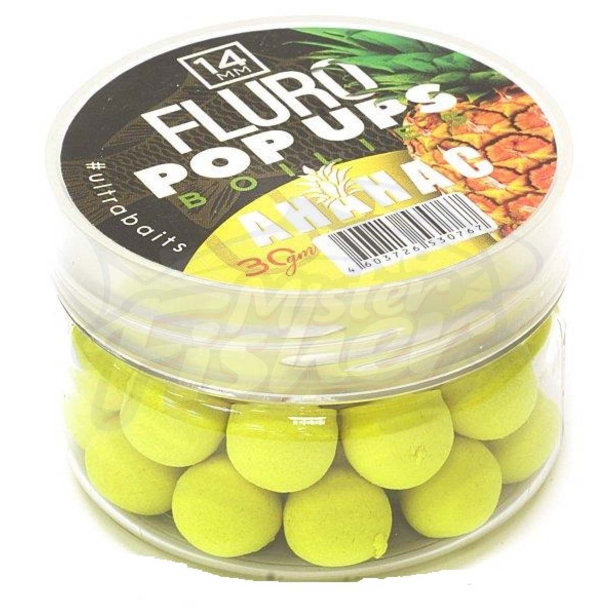 Бойлы плавающие FLURO POP UPS ULTRABAITS (АНАНАС) 14 мм