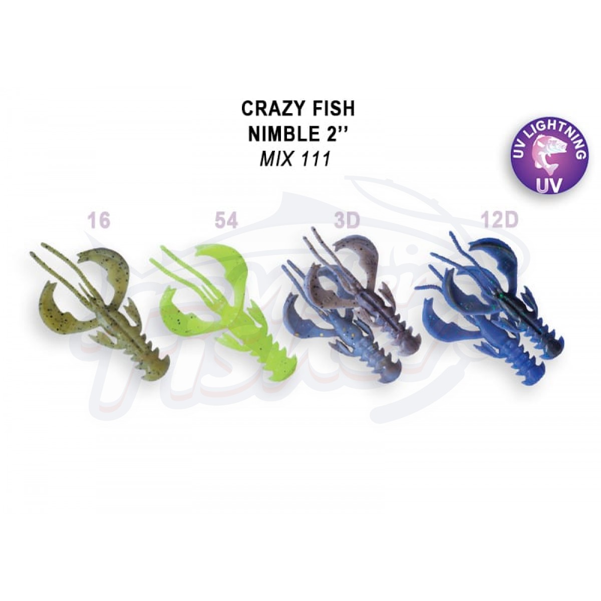 Crazy Fish Nimble 2” — пятисантиметровый рак с активными клешнями, которые после попадания в водоём сразу начинают попеременно или синхронно колебаться даже во время одной проводки в зависимости от потоков воды. Этот эффект оживляет приманку, провоцирую хищника на атаку. Хаос в движениях убегающей добычи, натуралистичность, беспрерывная размашистая работа без сбоев — в этом преимущество «Нимбла» перед виброхвостами и слагами в аналогичном размере.