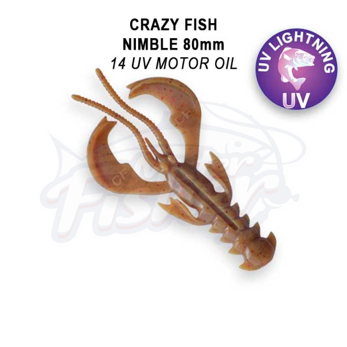 Crazy Fish Nimble 3.2” — рак с активными клешнями, которые после попадания в водоём сразу начинают попеременно или синхронно колебаться даже во время одной проводки в зависимости от потоков воды. Этот эффект оживляет приманку, провоцирую хищника на атаку. Хаос в движениях убегающей добычи, натуралистичность, беспрерывная размашистая работа без сбоев — в этом преимущество «Нимбла» перед виброхвостами и слагами в аналогичном размере.