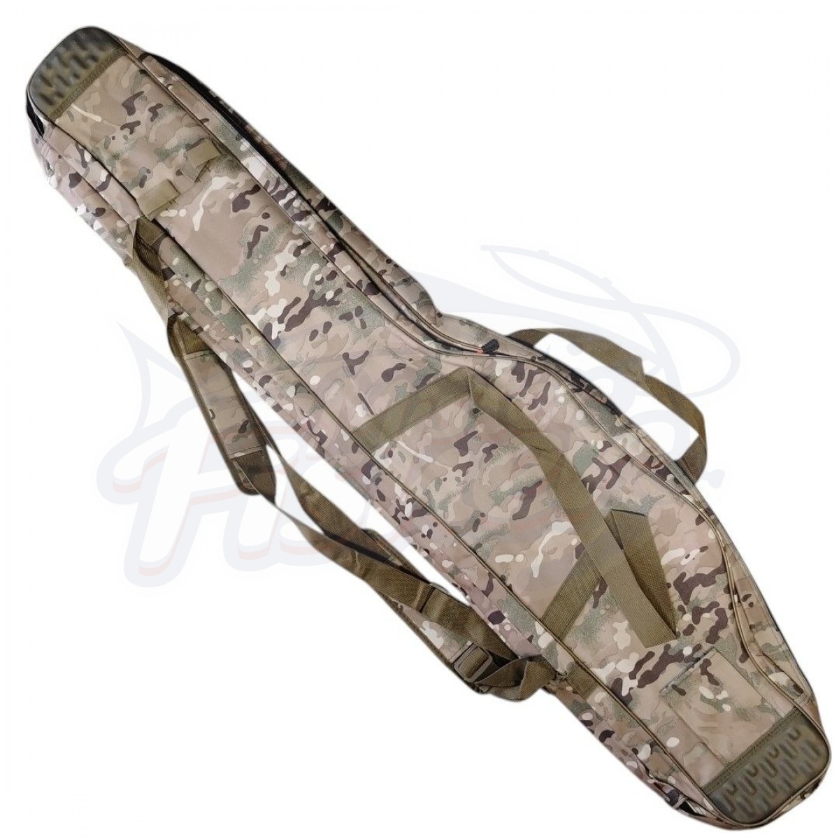 Конструкция: Чехол имеет расширение («пузо») в средней части, что позволяет размещать удилища, не снимая катушки.