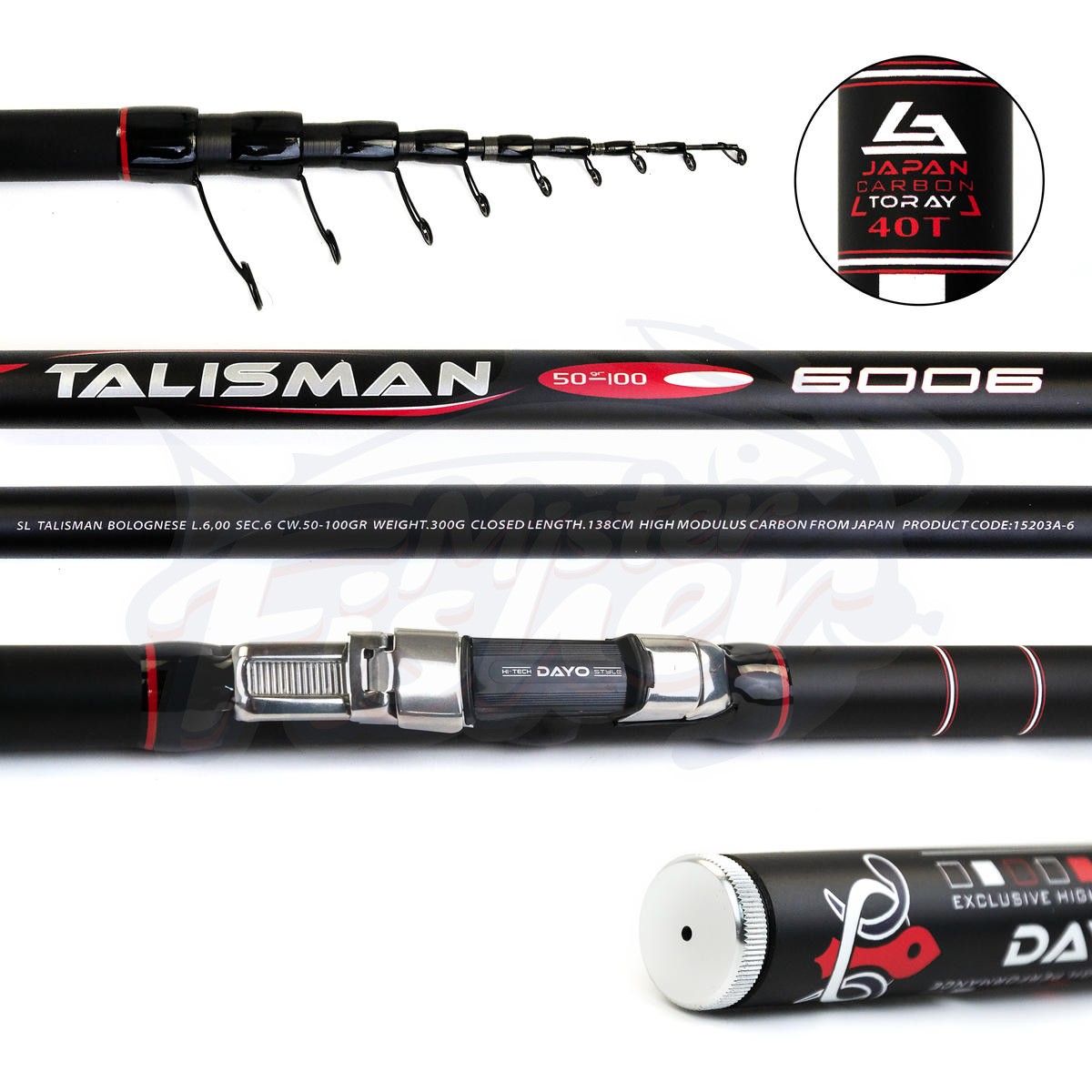 Болонские удилища DAYO TALISMAN (ДАЙО ТАЛИСМАН) выпускаются в длинах 5м, 6м, 7м. Материал изготовления: карбон 30 тонн. Тест удилищ 50-100гр. Удилища Dayo Talisman это силовые болонские удилища, которые предназначены для ловли крупной и сильной рыбы. Удочки Талисман можно использовать для рыбалки на реках с течением и водоемах без течения. Все модели производятся на современных заводах Китая из высоко-качественного карбона.