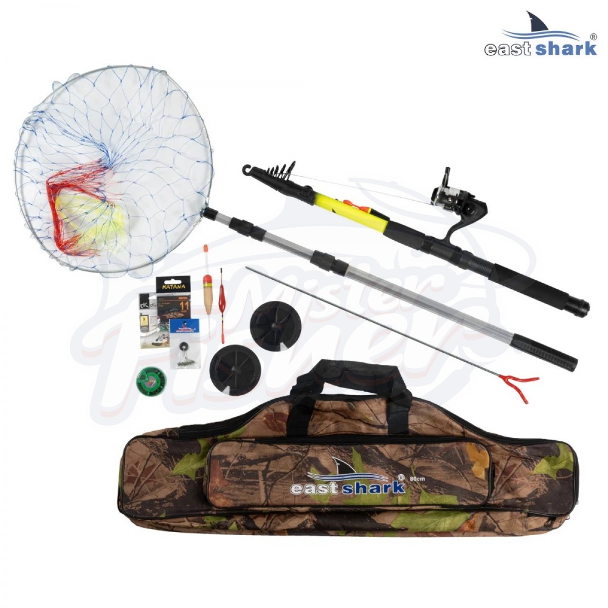 -Универсальное бюджетное телескопическое композитное удилище с катушкой и леской, полностью оснащенное, модель "Delta" EastShark с тестом 100-200 гр. 3,0м
