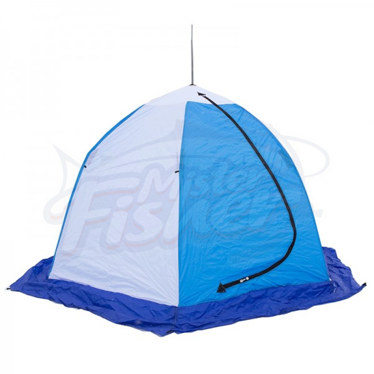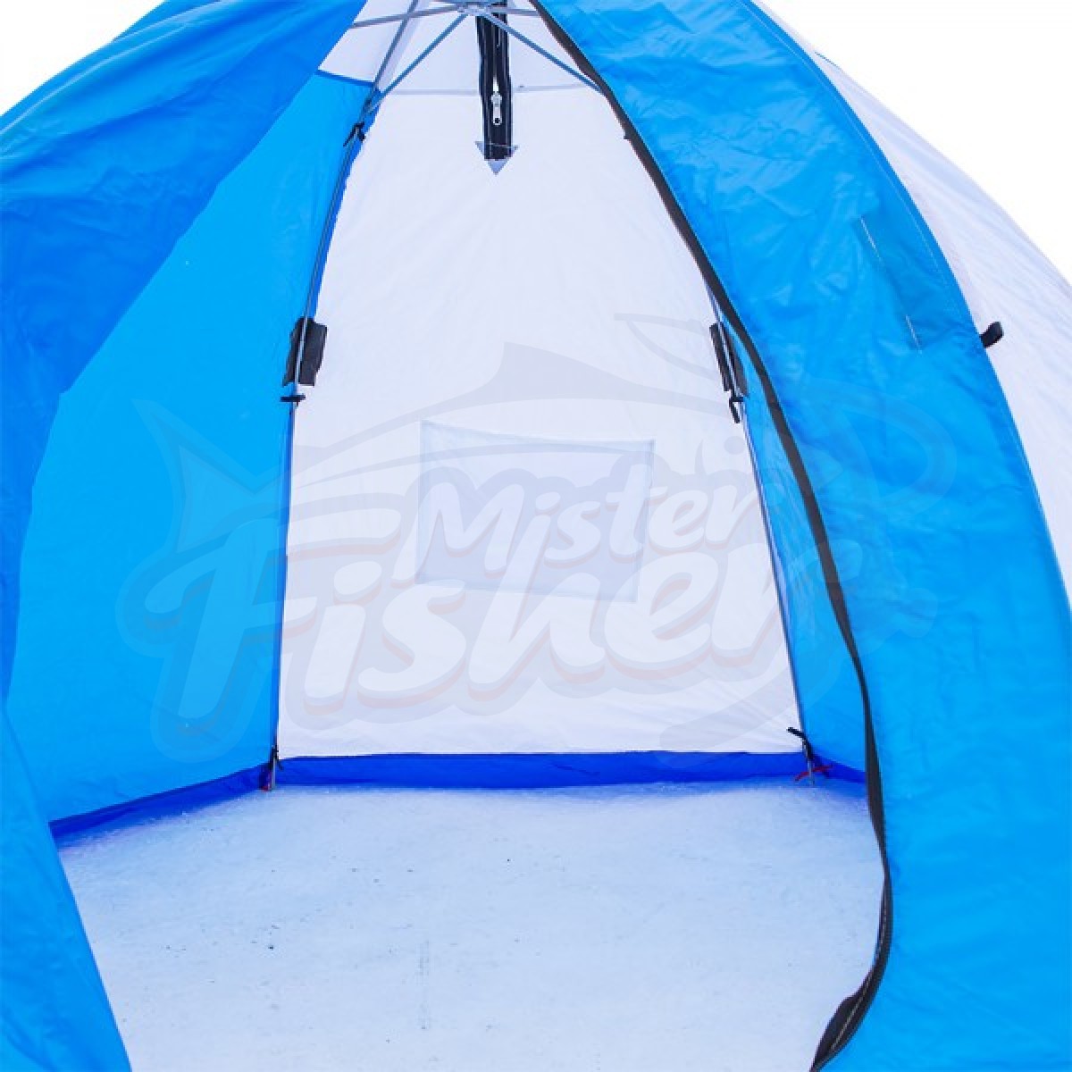 Основная часть тента изготовлена из синтетической водостойкой ткани 210 Neylon Oxford. Палатка сделана целиком из синтетики, что предпочтительнее в сырую погоду - ткань не намокает и не начинает пропускать воду. Крепление зимней рыболовной палатки ко льду производится растяжками от дуг каркаса. Палатки для зимней рыбалки оснащены «юбкой», устраняющей продувание по низу. Вход в палатку закрывается мощной молнией «тип 10. Встречные замки дают возможность приоткрыть молнию для вентиляции в любом месте. На внутренней поверхности тента есть карманы для различных мелочей.